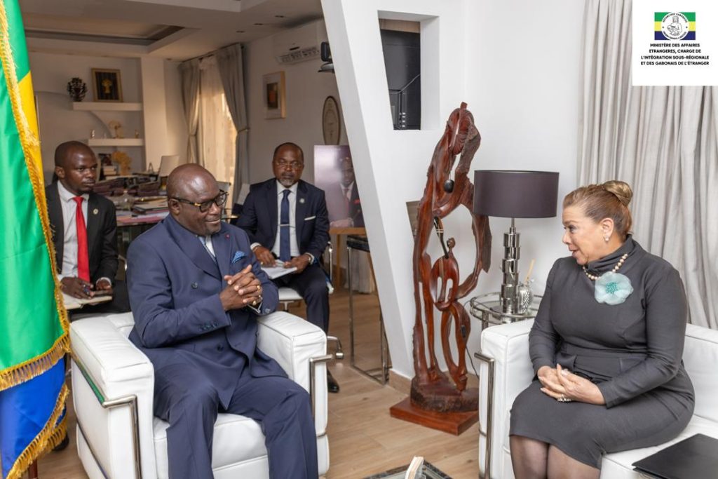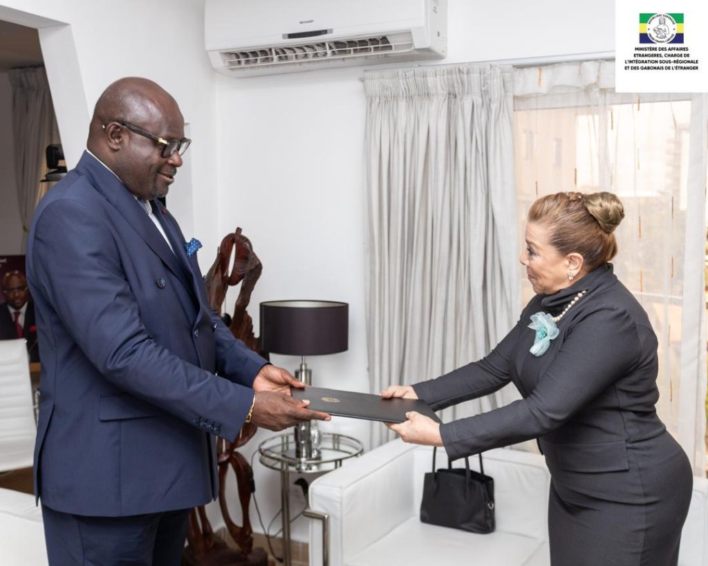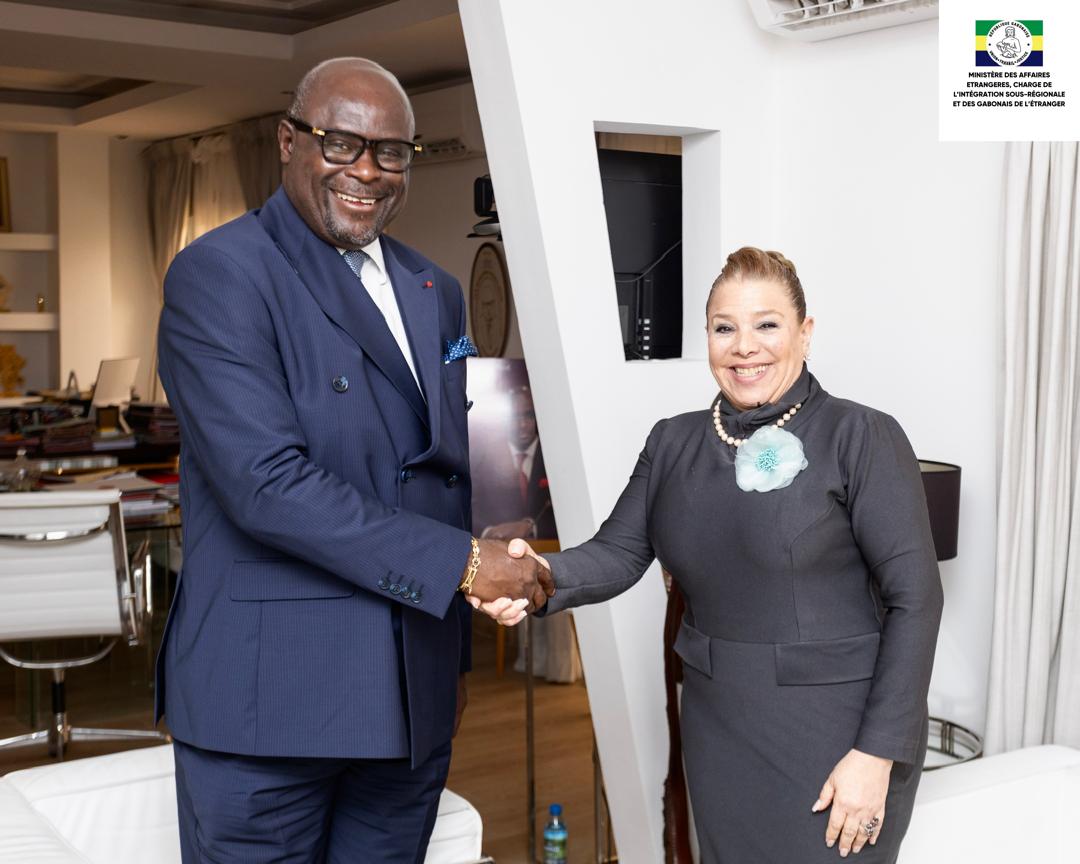 La embajadora Ana Pino Pasquier presentó ante el ministro de Asuntos Exteriores encargado de la Integración Subregional y de los Gaboneses en el Exterior, Michel Régis Onanga Ndiaye, las Copias de Estilo de las cartas que la acreditan como Embajadora Extraordinaria y Plenipotenciaria ante el Gobierno de la República Gabonesa, concurrente desde Guinea Ecuatorial.